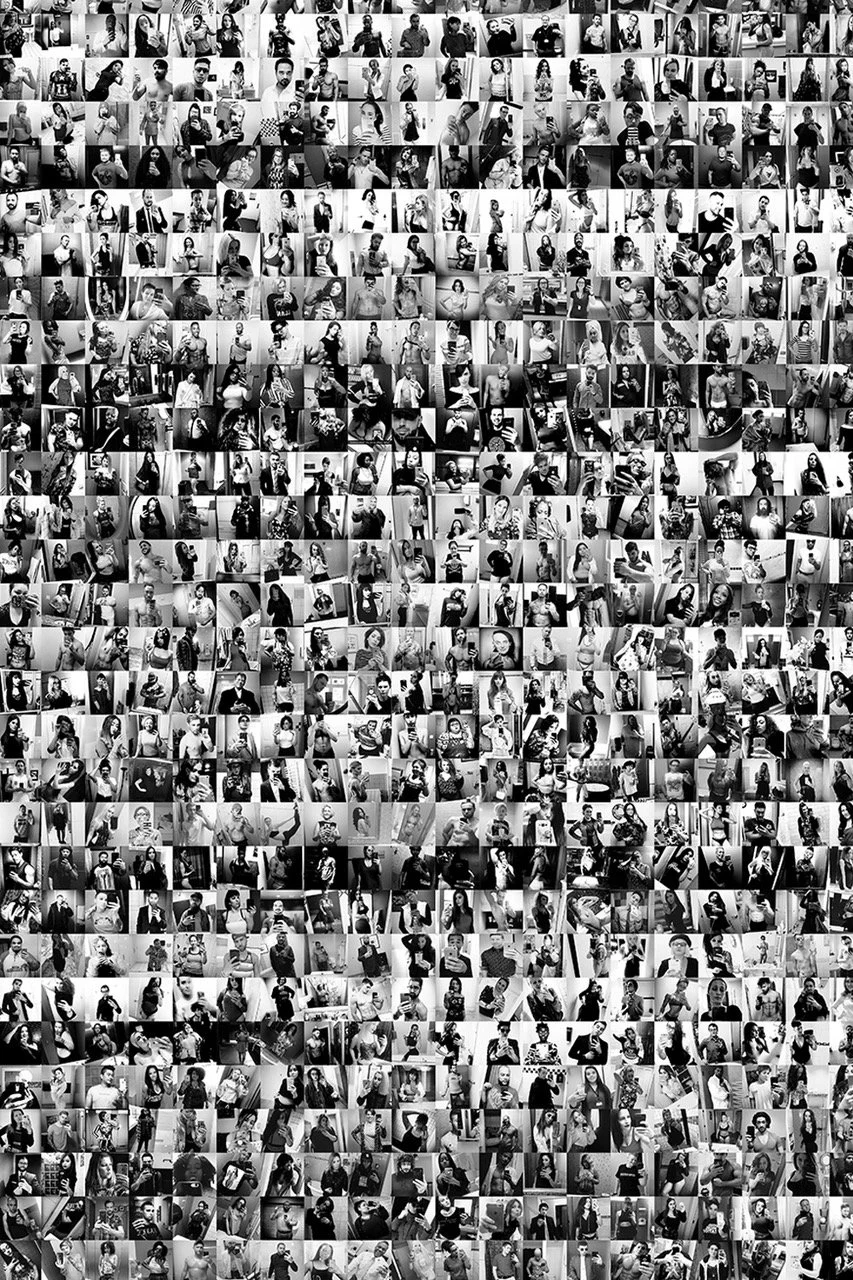 “From afar, many of these images are reduced to something like old school television static, with buzzing layers of black and white seeming to resolve into stripes, but then dissolving back into crackly noise…up close, the amazing diversity of humanity seems to be collapsed a bit, each of us looking largely like our neighbors and friends when placed in front of a mirror with our smartphones.” —Collector Daily